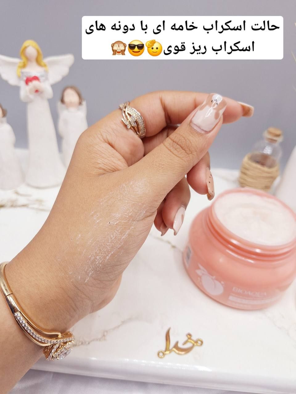 ویژگیها: لایهبردار ملایم، نرمکننده، دارای عصاره هلو، تقویتکننده شادابی پوست